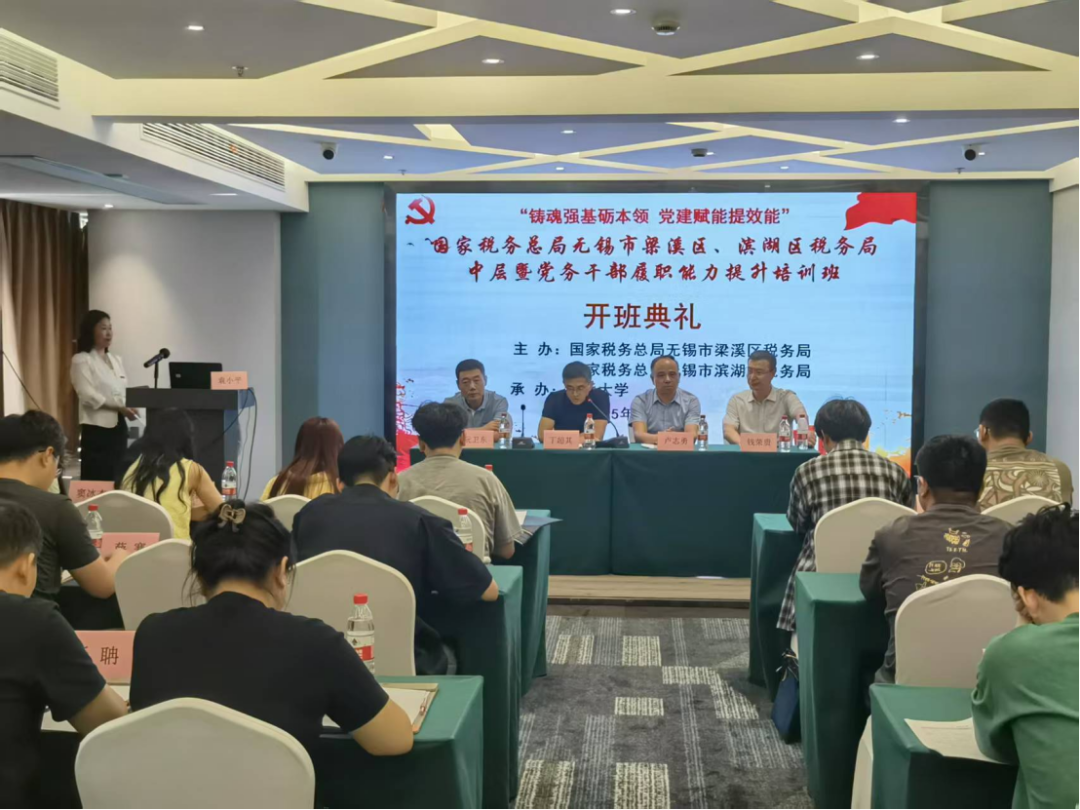 7月1日,由国家税务总局无锡市梁溪区、滨湖区税务局主办,我校承办的“铸魂强基砺本领 党建赋能提效能”中层暨党务干部履职能力提升培训班在我校举行。来自无锡市梁溪区税务局、无锡市滨湖区税务局的50余名学员参加培训。