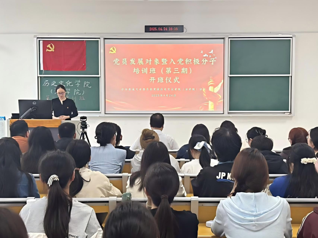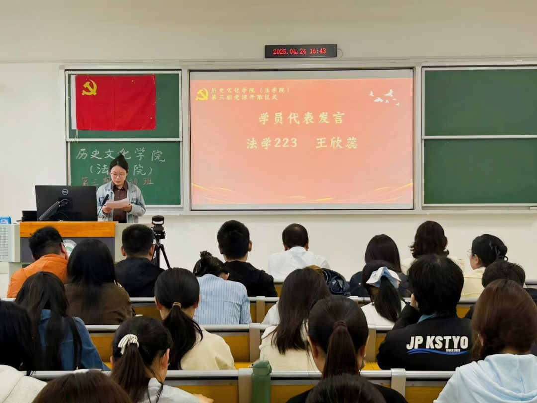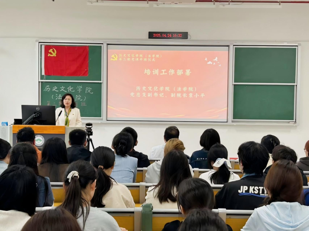为不断加强对党员、发展对象及入党积极分子的培养教育,进一步增强其对党的基础理论、基本知识的理解和认识,持续提升青年学生的政治素养,扎实有效地推进党员的发展和教育工作,4月24日,历史文化学院(法学院)举办了第三期党员发展对象暨入党积极分子培训班、党员再教育培训班开班仪式。学院党总支书记许慈晖,党总支副书记、副院长袁小平出席仪式,学生工作办公室主任、学生党支部书记陶慧主持。