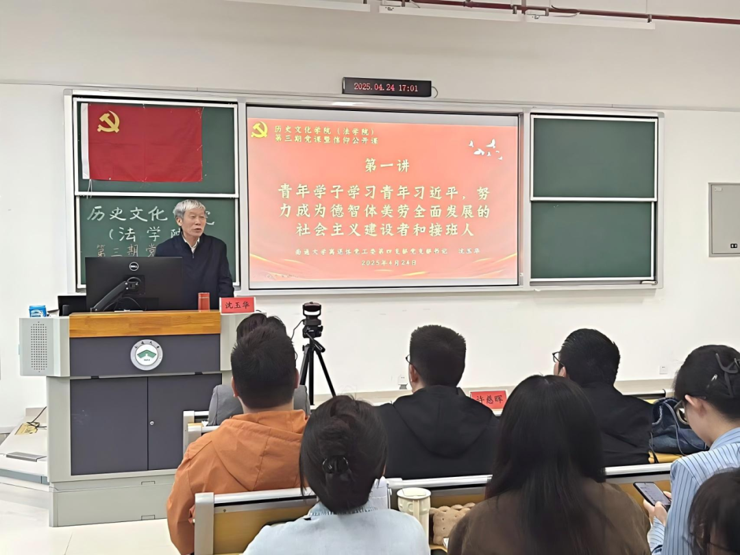 开班仪式结束后,南通大学离退休党工委第四支部党支部书记沈玉华以《青年学子学习青年习近平,努力成为德智体美劳全面发展的社会主义建设者和接班人》为题开启了首场专题党课暨信仰公开课。