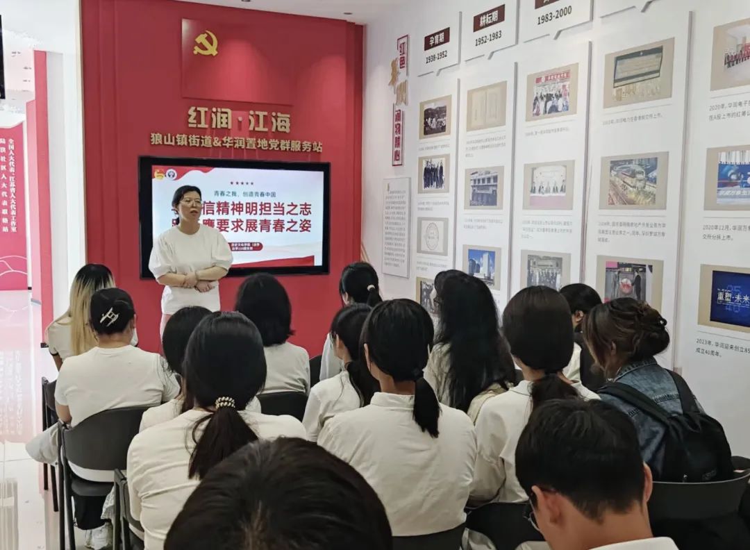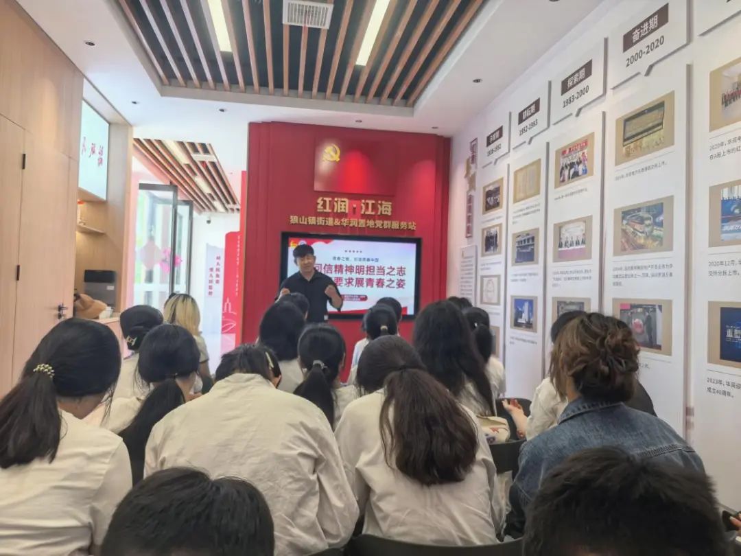 “五四宪法是新中国法治建设的里程碑,而基层法治建设正是宪法精神的生动注脚。”陈菲菲通过展示狼山镇街道普法宣传、矛盾纠纷化解等实践案例,引导青年思考法治与社会治理的深层关联。在讲解中,她提到:五四宪法确立的人民代表大会制度,与五四运动“外争主权,内除国贼”的民主诉求一脉相承,体现人民主权原则的制度化表达,而宪法序言强调“全国各族人民团结奋斗”,则与五四爱国精神形成价值共鸣。由此,她激励青年们要积极参与基层法治建设,在实践中锻炼品格意志,体现社会价值。