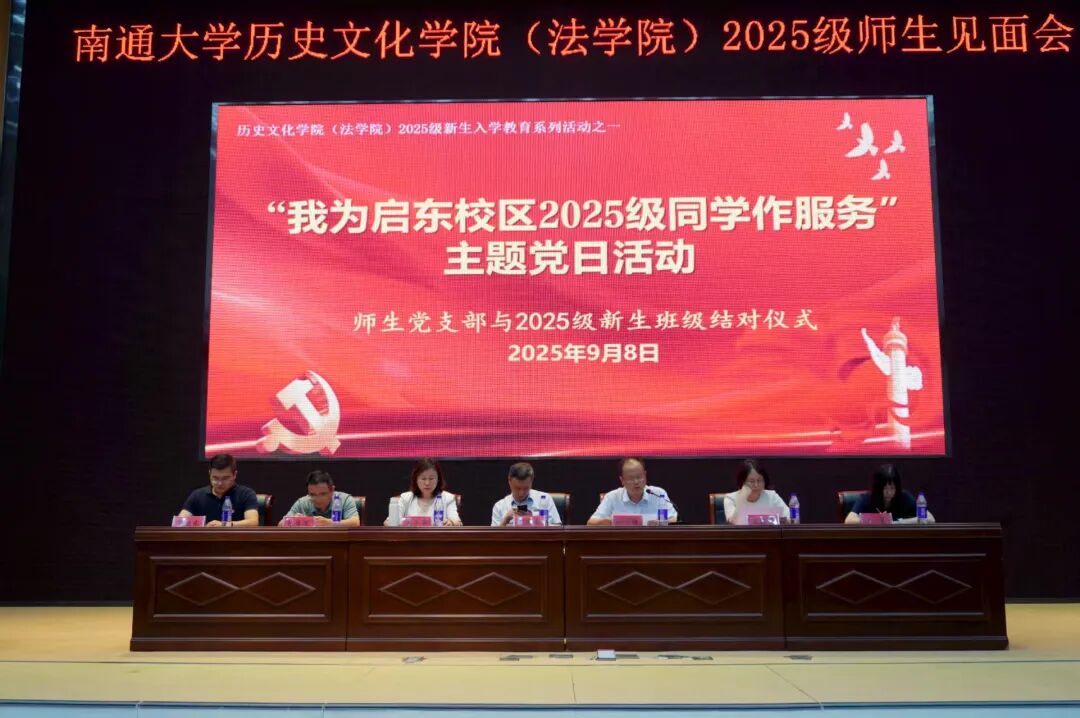 9月8日,历史文化学院(法学院)党总支在启东校区举行“我为启东校区2025级同学服务”师生党支部与2025级新生班级结对主题党日活动启动仪式。此次活动以强化党建引领为核心目标,着重凸显师生党支部的战斗堡垒作用以及党员的先锋模范作用。