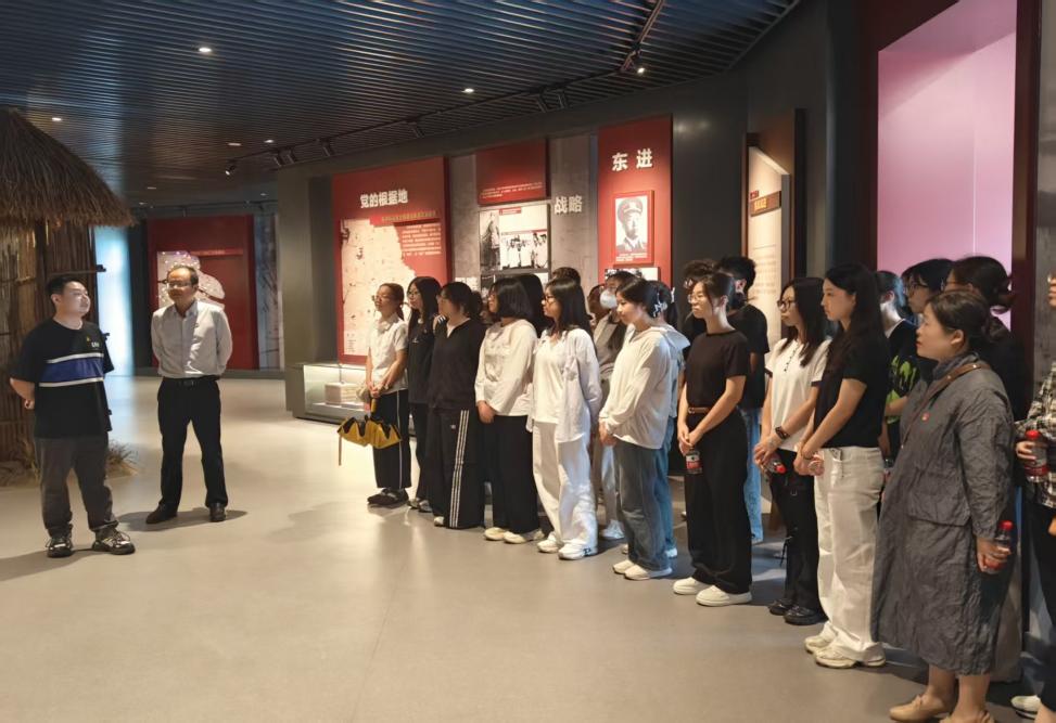 踏进耙齿凌革命教育基地,党员干部们在学院工会主席张若愚的引领下,首先了解了“耙齿凌”这一饱含历史印记的地名由来,随后缓步穿行于各主题陈列馆。作为苏中反“扩展清乡”的关键一役,这里打响了我方胜利的第一枪,馆内珍藏的历史影像、斑驳文物与逼真场景,无声诉说着那场载入史册的激烈战斗。张若愚讲述了以“老虎团”为代表的英勇部队前仆后继、浴血奋战的壮烈史诗,他特别提到秦镜等烈士在枪林弹雨中率领部队奋勇突击、直至生命最后一息的感人事迹。在张若愚的生动叙述中,那段风雨如晦的岁月被瞬间拉近,新四军将士们震天的呐喊与无畏的身影仿佛穿越时空,清晰如在眼前,深深震撼着在场每一位党员,让红色基因在新时代的血脉中奔涌不息。