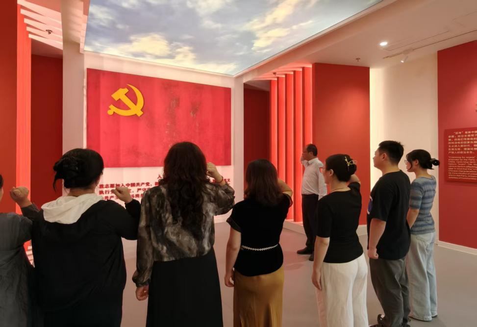 参观后,全体党员面向鲜艳的党旗,庄严举起右拳,重温入党誓词,“我志愿加入中国共产党,拥护党的纲领,遵守党的章程......”的铮铮誓言在陵园上空久久回荡。这字字千钧的宣誓,既是对入党初心的深切回溯,也是对理想信念的再次淬炼,更是对党和人民许下的庄严承诺。