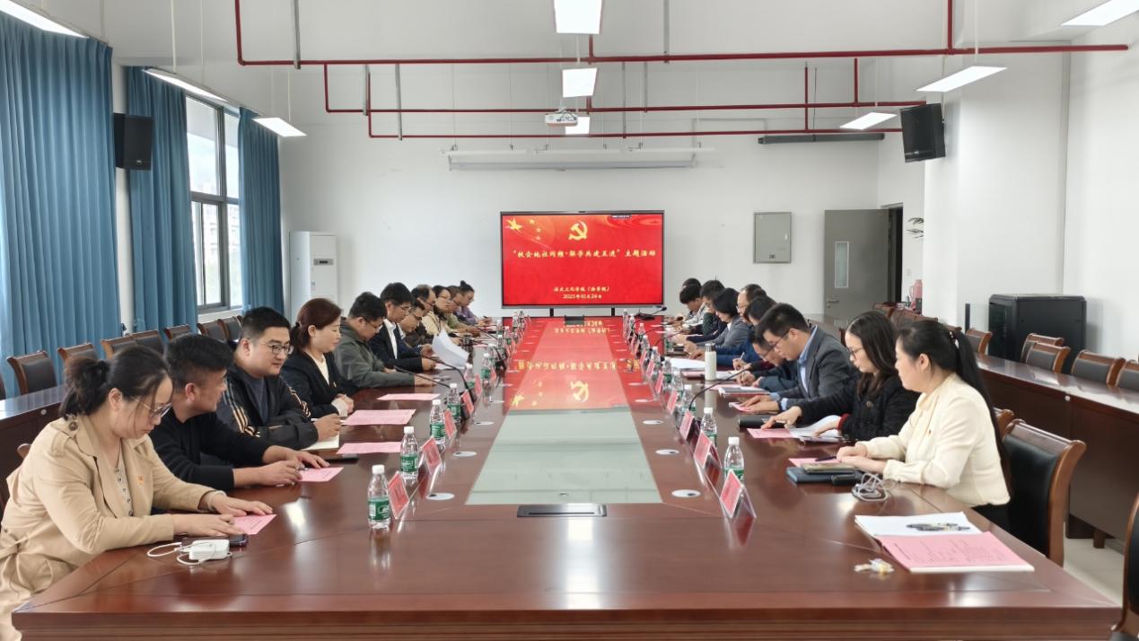 活动第一阶段为联学研讨。学院副院长王晓燕率先领学习近平法治思想,从形成发展、核心要义、原创性理论贡献等方面进行系统解读,清晰阐释新时代全面依法治国的重要意义,为后续交流筑牢理论根基。随后,五位代表结合各自领域实践开展主题分享。华润置地上海公司党总支副书记、第三党支部书记、上海公司副总经理郁文杰从企业视角出发,介绍了华润置地在法治框架下积极履行社会责任的具体举措与实践经验;狼山镇街道人大工委主任王铁荣结合街道工作实际,阐述了在推进全过程人民民主、优化基层治理机制过程中的探索与积累的经验做法;狼山镇街道陆洪社区党委书记钱影风聚焦社区服务场景,分享了通过法治思维与方法解决居民急难愁盼问题的典型案例;学院法学系党员韩业斌立足学术研究领域,探讨了法学理论研究与基层法治实践深度结合的路径,为完善基层法治体系提供理论参考;学院学生工作办公室主任、学生党支部书记陶慧围绕学生培养工作,分析了如何将基层法治实践融入法学教育,为社会输送实用型法治人才的具体思路。