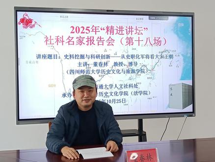 10月25日,四川师范大学历史文化与旅游学院董春林教授、博导,应邀做客我校人文社科“精进讲坛”(第十八场),作题为《史料挖掘与科研创新——从吏职化军将看大宋王朝》的学术报告。本次报告会由我校人文社科处主办、历史文化学院(法学院)承办。