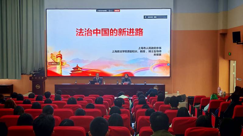 近日,上海市人民政府参事、上海政法学院原副校长、二级教授、博士生导师关保英应邀做客我校人文社科“精进讲坛”(第二十场),在啬园校区作主题为《法治中国的新进程》的学术报告。本次报告会由我校人文社科处主办、历史文化学院(法学院)承办,历史文化学院(法学院)副院长王晓燕教授主持报告,历史文化学院(法学院)、医学院等师生150余人参加报告。