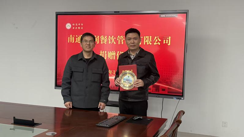 11月25日上午,历史文化学院(法学院)举行南通百润餐饮管理有限公司捐赠仪式。社会资源处处长、南通大学教育发展基金会秘书长施险峰向捐赠者南通百润餐饮管理有限公司总经理严百强颁发捐赠证书和纪念牌。