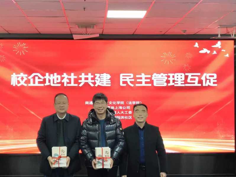 在交流分享环节,各方代表结合实践案例,进行了深入的经验交流。学院党总支书记许慈晖在发言中表示,学院将立足历史学、法学等学科特色,锚定三大共建方向精准发力:一是依托历史系学术资源,深度助力社区文化的挖掘整理与传承弘扬;二是凭借法学专业师资力量,为企业合规管理、社区纠纷化解、基层法治建设提供实践支持与人才保障;三是发挥张謇研究院研究优势,持续深化地方历史文化与名人思想的挖掘研究。华润置地上海公司、陆洪社区、狼山镇街道人大工委等代表,分别围绕企业民主管理体系建设、社区合并中的民主治理实践、辖区集体资产民主管理规范等内容交流经验,现场研讨氛围热烈,凝聚起多方共建的强大合力。