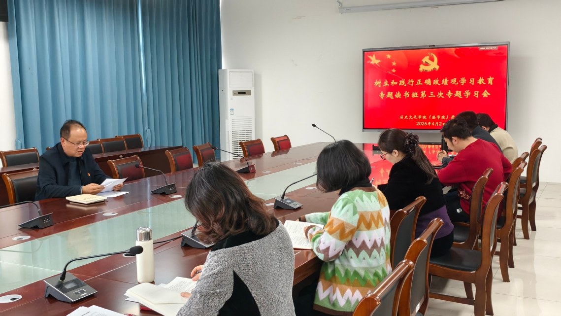 4月2日下午,历史文化学院(法学院)树立和践行正确政绩观学习教育专题读书班开展第三次集中学习研讨。本次学习聚焦《习近平关于树立和践行正确政绩观论述摘编》第三专题“为民造福是最大的政绩”,通过领学解读、交流研讨相结合的方式,进一步深化思想认识、凝聚实践共识。会议由学院党总支书记许慈晖主持。